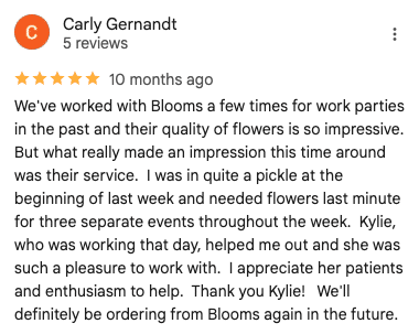 Blooms Florist & Flower Delivery is not just any flower shop in Corona Del Mar; we are a full-service florist, committed to fulfilling all your flower needs. Our dedication as a real local florist is steady, making sure that every floral arrangement and bouquet is made with utmost care and precision.